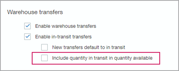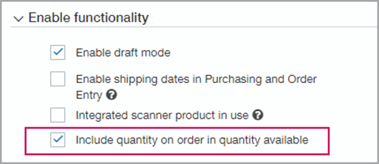 • If you practice just-in-time inventory, you probably want the available quantity to reflect only what’s on premise.