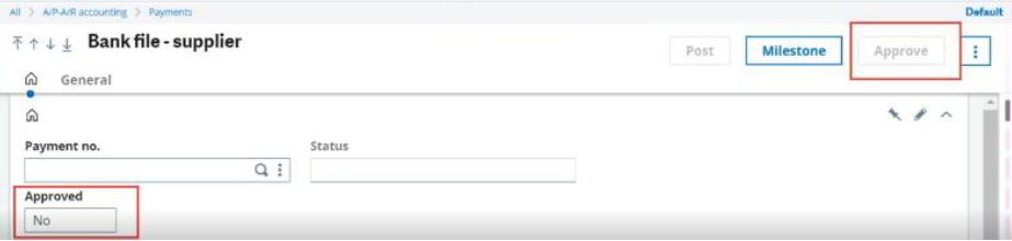 To better support segregation of duties and secure AP and AR processes, payment remittance approvals in have been enhanced. You can decide if payment approval is required to process a payment and create a bank file. Approvals are authorized at the user level and a bank file can only be created for payments where no authorization is required or for approved payments for manual and automatic remittances. Outgoing payments can be approved at the payment level or the manual remittance level, and mass approvals or mass removal of unapproved payments is available at the remittance level.